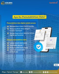 Pemutakhiran data digital adalah proses memperbaharui data fisik dan yuridis, menyesuaikan data dengan kondisi lapangan, serta mengintegrasikan data ke dalam sistem digital pertanahan.