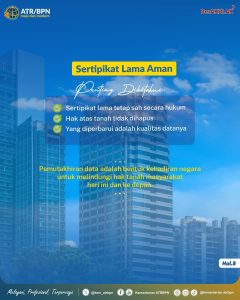 “Sertipikat lama tetap sah secara hukum. Hak atas tanah tidak dihapus. Yang diperbaharui adalah kualitas datanya,” ujar Nusron.