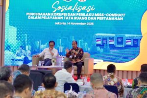 NUSANEWS.CO.ID – JAKARTA. Kementerian Agraria dan Tata Ruang/Badan Pertanahan Nasional (ATR/BPN) terus memperkuat integritas dan kualitas layanan pertanahan melalui kolaborasi dengan Komisi Pemberantasan Korupsi (KPK). Komitmen ini ditegaskan dalam kegiatan Sosialisasi Pencegahan Korupsi dan Perilaku Missconduct yang digelar di Aula Prona, Kantor Kementerian ATR/BPN, Jakarta, Jumat (14/11/2025).