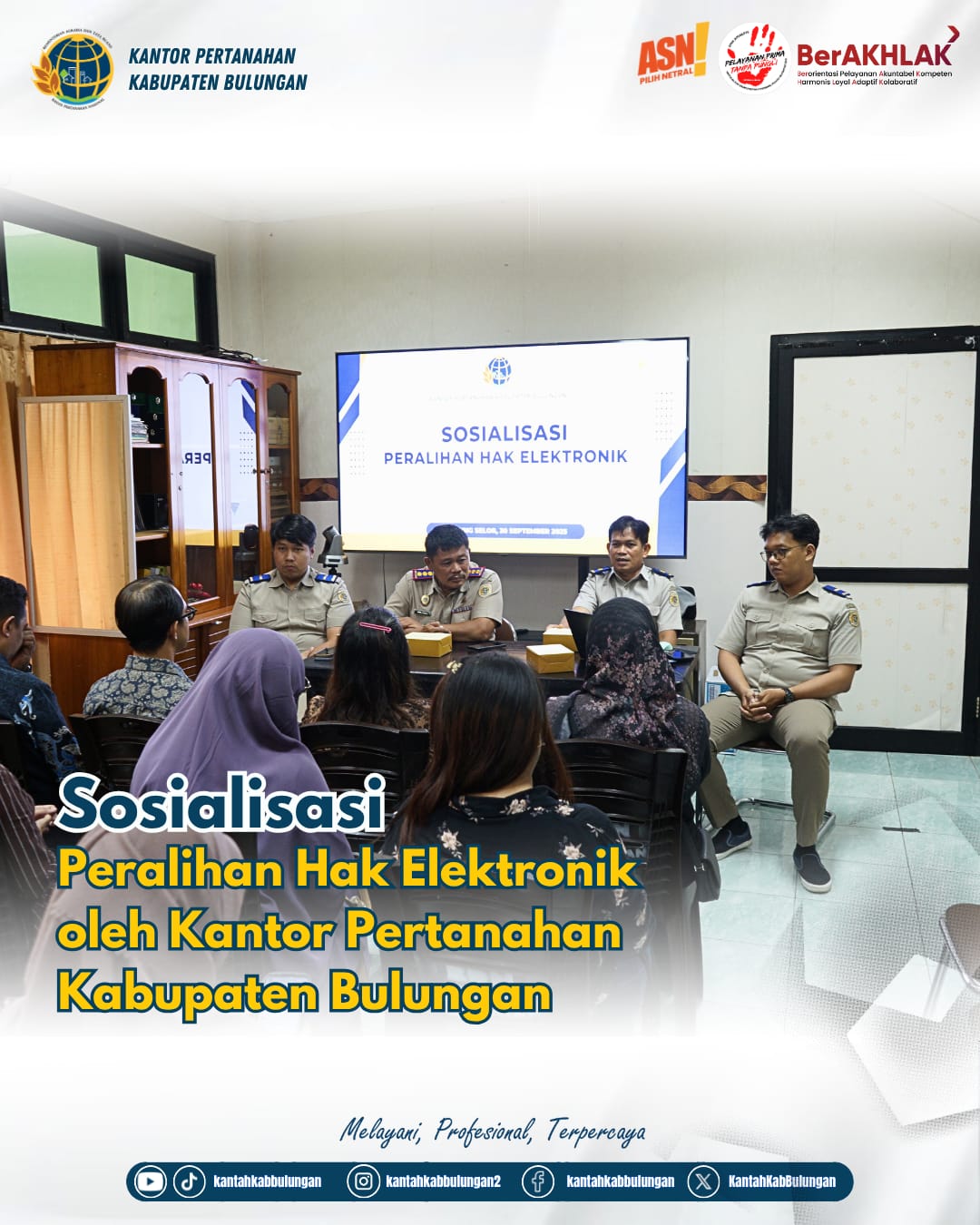 NUSANEWS.CO.ID-BULUNGAN. Kantor Pertanahan Kabupaten Bulungan menggelar Sosialisasi Peralihan Hak Elektronik pada Selasa (30/09/2025) bertempat di Ruang Kepala Kantor Pertanahan Bulungan.