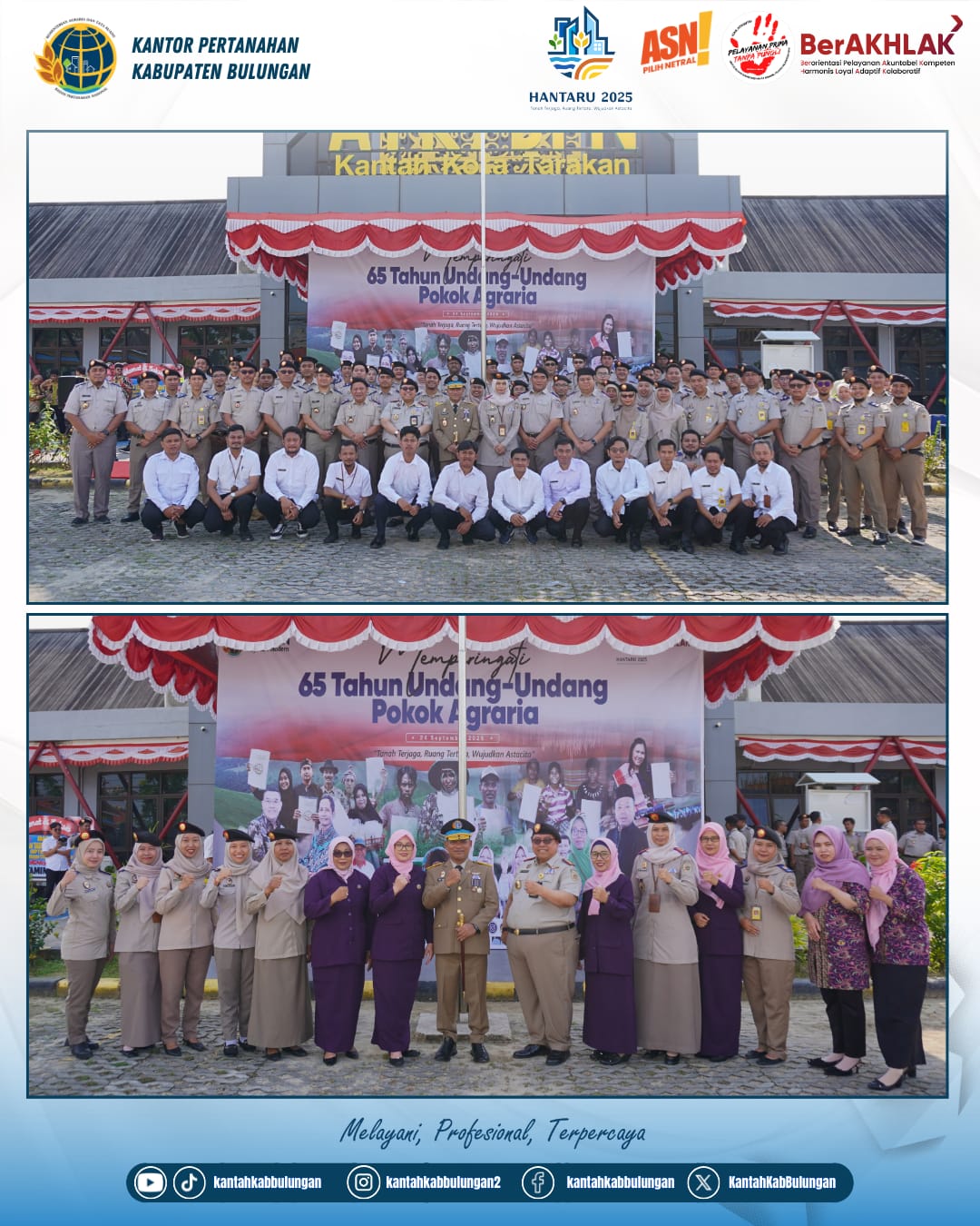 NUSANEWS.CO.ID-TARAKAN. Kantor Pertanahan Kabupaten Bulungan turut serta dalam upacara peringatan Hari Agraria dan Tata Ruang (HANTARU) Tahun 2025 yang digelar di halaman Kantor Pertanahan Kota Tarakan, Rabu (24/9/2025).