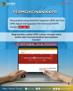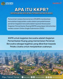 Nah, untuk kegiatan berusaha, KKPR menjadi dasar bagi aktivitas yang memerlukan Perizinan Berusaha sebagai legalitas agar pelaku usaha dapat menjalankan usahanya secara sah.