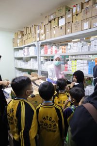 Kegiatan kemudian dilanjutkan dengan tur edukatif. Para siswa dibagi menjadi dua kelompok. Satu kelompok mengunjungi Instalasi Farmasi Rawat Jalan dan Gudang Farmasi untuk melihat proses pelayanan obat, sementara kelompok lainnya menyambangi layanan Ambulans Gawat Darurat (AGD) untuk mengenal fungsi serta peralatan medis yang digunakan dalam kondisi darurat.