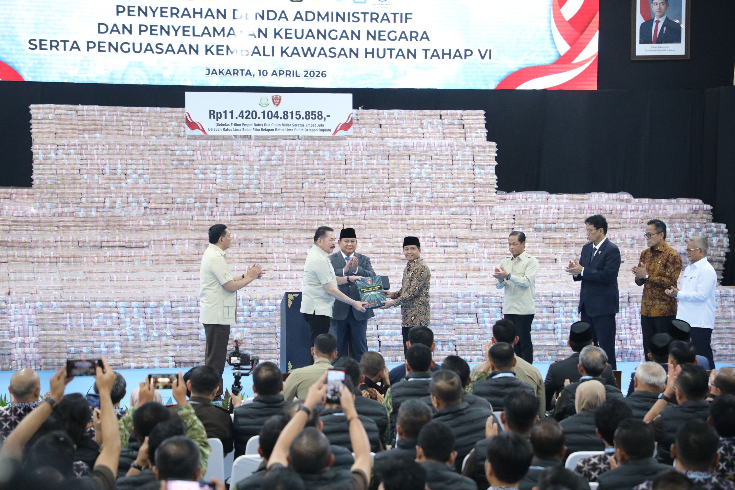 NUSANEWS.CO.ID – JAKARTA. Wakil Menteri Agraria dan Tata Ruang/Wakil Kepala Badan Pertanahan Nasional (Wamen ATR/Waka BPN), Ossy Dermawan, menyaksikan penyerahan denda administratif dan penyelamatan keuangan negara tahap VI senilai Rp11.420.104.815.858 hasil kerja Satuan Tugas Penertiban Kawasan Hutan (Satgas PKH), di Kompleks Kejaksaan Agung, Jakarta, Jumat (10/04/2026).