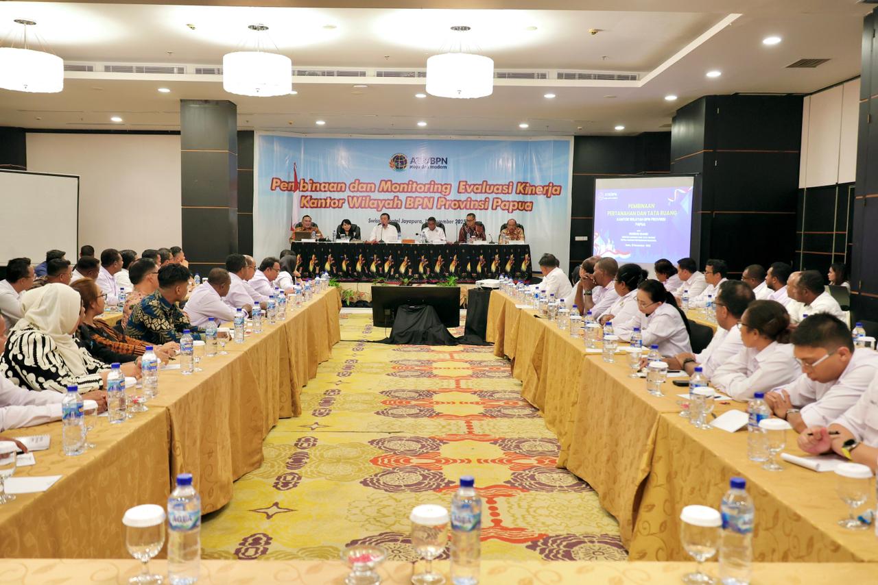 NUSANEWS.CO.ID – JAYAPURA.  Menteri Agraria dan Tata Ruang/Kepala Badan Pertanahan Nasional (ATR/BPN), Nusron Wahid, mendorong jajaran Kantor Wilayah (Kanwil) BPN Provinsi Papua untuk terus menguatkan kualitas pelayanan pertanahan. Di depan jajaran BPN se-Papua, Menteri Nusron mengingatkan kembali dasar pelayanan yang perlu dijadikan pedoman.