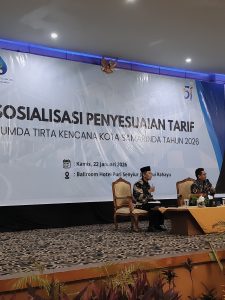 NUSANEWS.CO.ID – SAMARINDA. Perumda Tirta Kencana Kota Samarinda resmi melakukan penyesuaian tarif air minum sebesar 9 persen. Kebijakan ini disosialisasikan kepada masyarakat dalam kegiatan Sosialisasi Penyesuaian Tarif Air Minum yang digelar di Hotel Puri Senyiur Samarinda, Kamis (22/1), sebagai bagian dari persiapan penerapan tarif tahun 2026 yang dilakukan secara bertahap mulai Januari 2026.