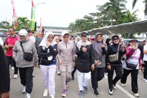Dia pun menyebutkan hingga finish, jumlah peserta jalan sehat yang terdaftar mencapai 1.744 orang. “Tahun ini yang baru adalah pola pendaftaran dan pengundian hadiah. Sepeda santai dan jalan santai, semua registrasi secara digital,” ungkapnya. Dalam ajang olahraga kali ini, diakuinya, peserta sudah berjalan menempuh jarak 2,8 Km selama 35 menit hingga 40 menit atau sekitar 3000 langkah. “Ya memang dalam satu fase minimal kita berjalan 3000 langkah,” sebutnya.